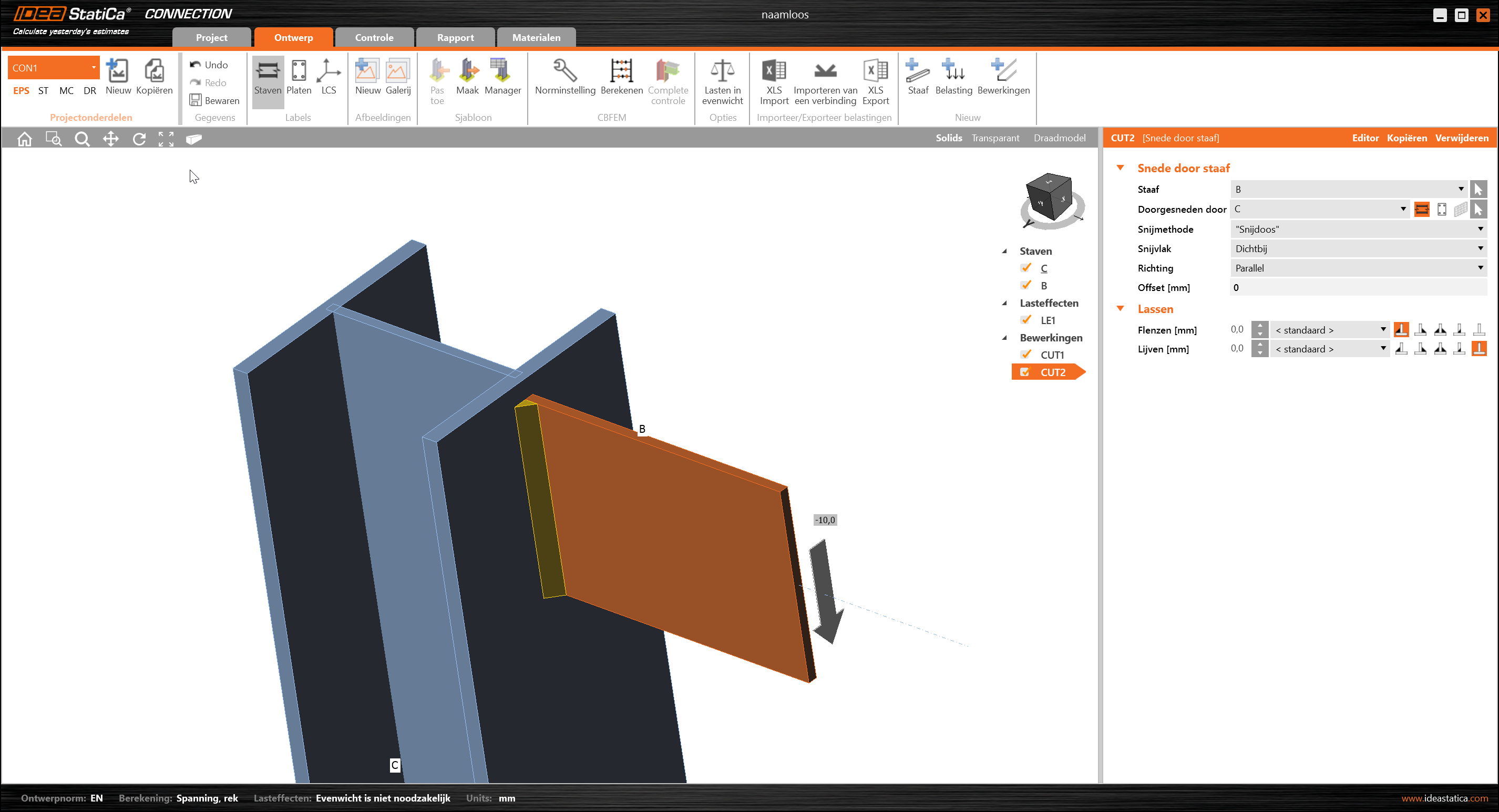 Dat betekent dat er een deel van de verbinding niet vastzit en kan bewegen. Door deze vrije beweging kan in IDEA Connection geen stabiele situatie ontstaan.