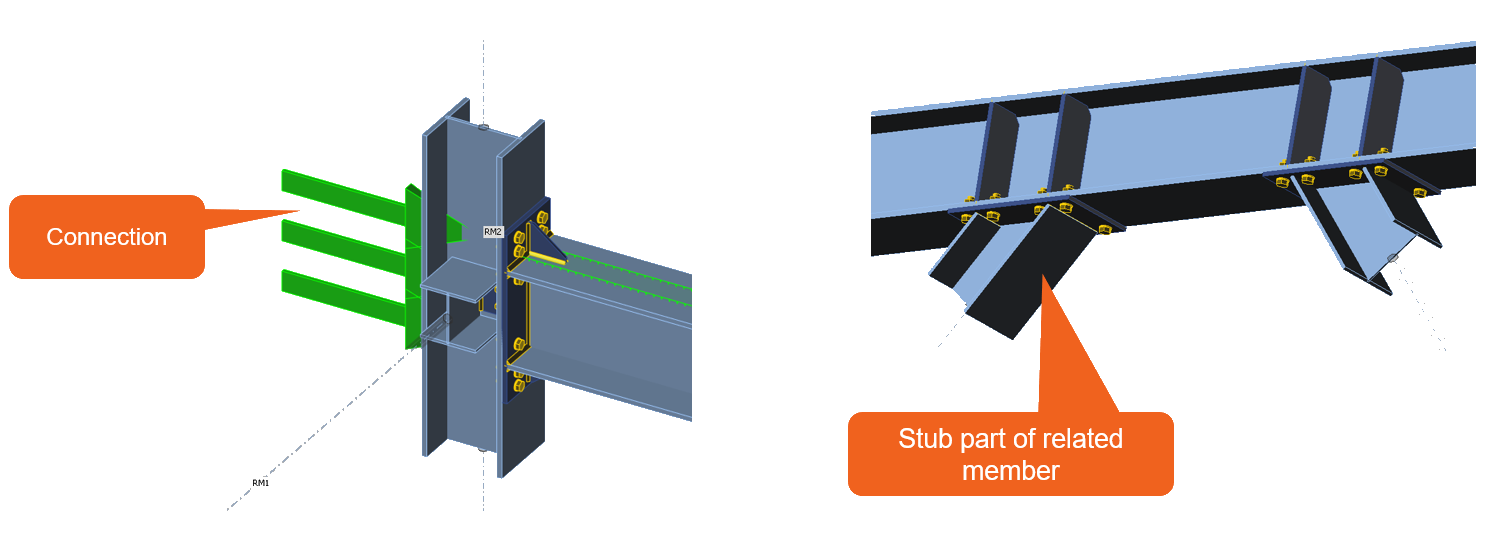 Connections between the Analyzed member and the Related members are defined by the joint design.