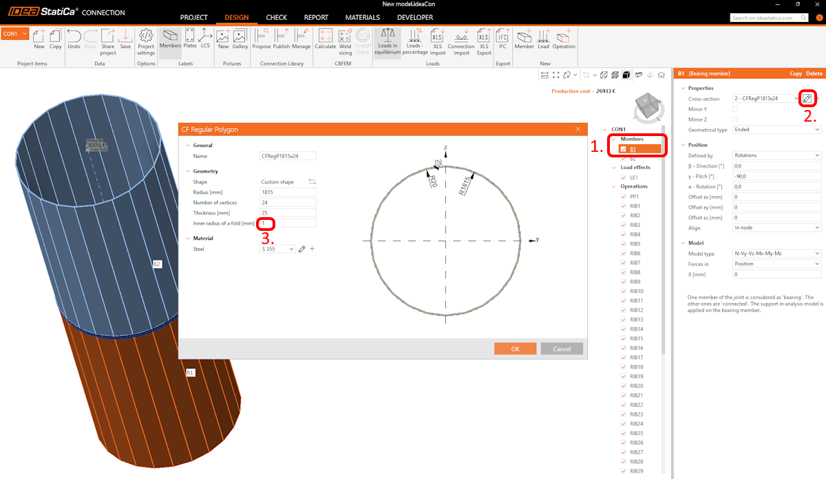 Opmerking: Als het dragende element geen holle doorsnede heeft, wordt de GMNA-solver uitgeschakeld voor de analyse van het hele verbindingsmodel, ongeacht de instellingen in de code setup (GMNA aan of uit).