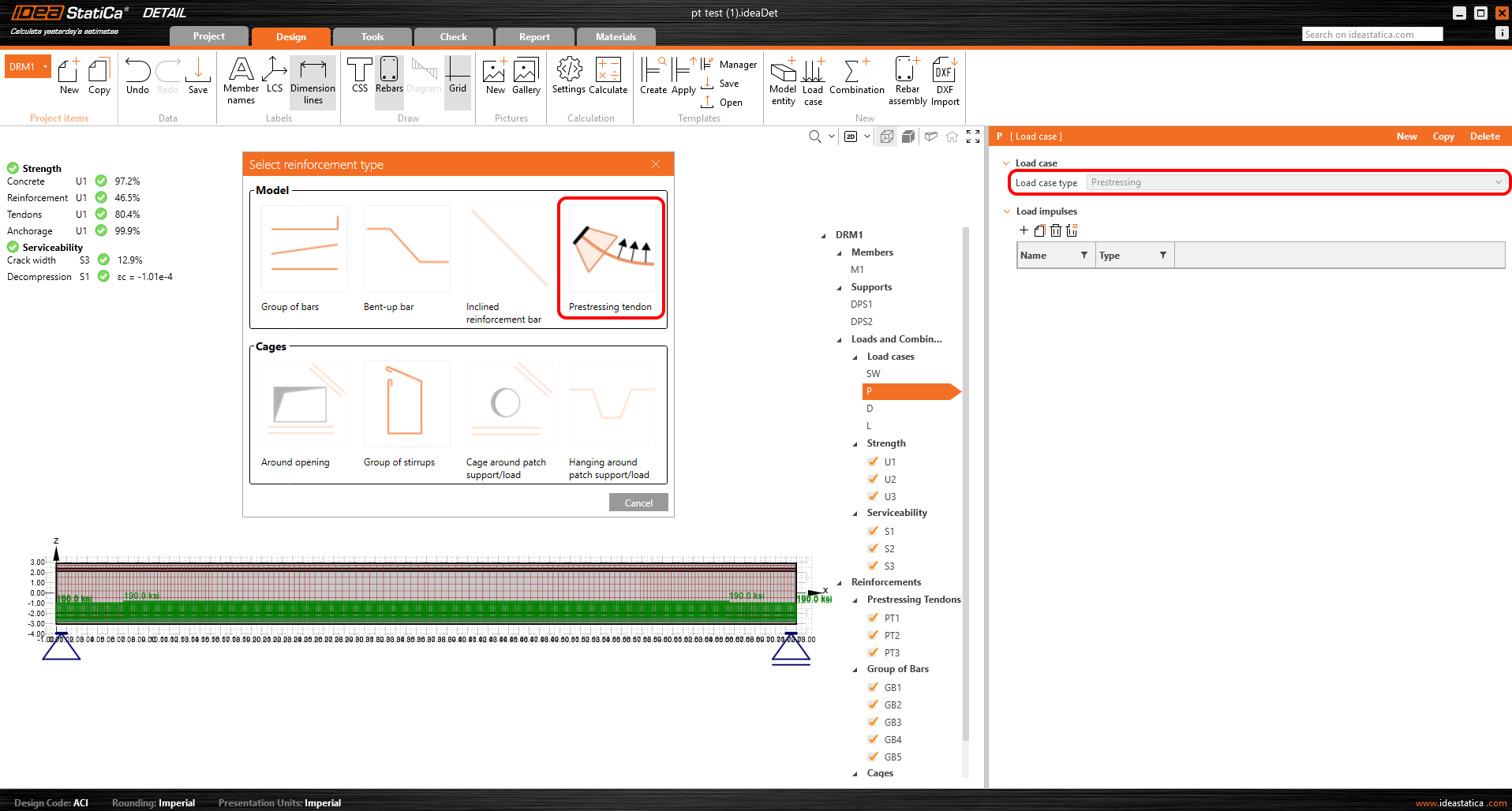 Voor de ACI standaard is een Load Case type, voorspanning, toegevoegd, waarmee voorspanningwapening kan worden ingevoerd. Dit type is nodig voor het definiëren van de voorspanelementen.