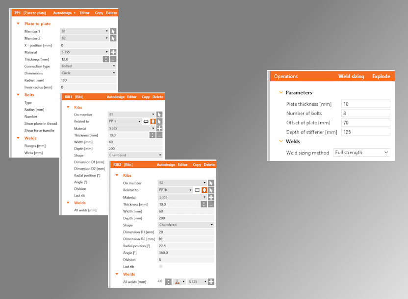 Thanks to the basic concept of modeling in the IDEA StatiCa Connection application, it's very easy to build quite complex 3D models with several connected members. In case the user also wants to create some dependencies between different model properties, there is a way to do that directly in the Connection app.