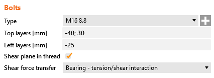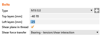 În acest exemplu, șuruburile sunt simetrice. Distanța de la conturul secțiunii transversale trebuie specificată. Un număr multiplu de rânduri și coloane de șuruburi pot fi specificate folosind delimitatori. Există două tipuri de delimitatori care pot fi folosiți pentru rânduri și coloane suplimentare: