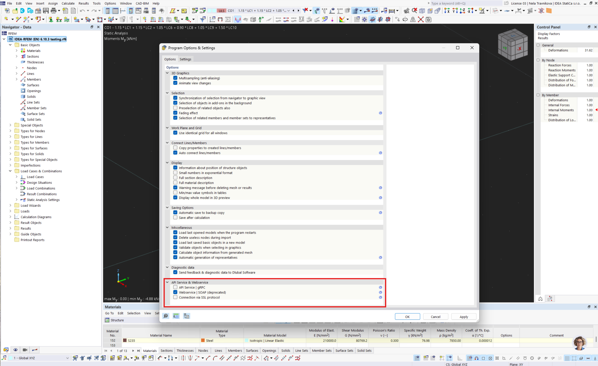 Open RFEM 6/RSTAB 9 and navigate to the menu Options and Program options, and turn on the WebService to enable the data transfer.
