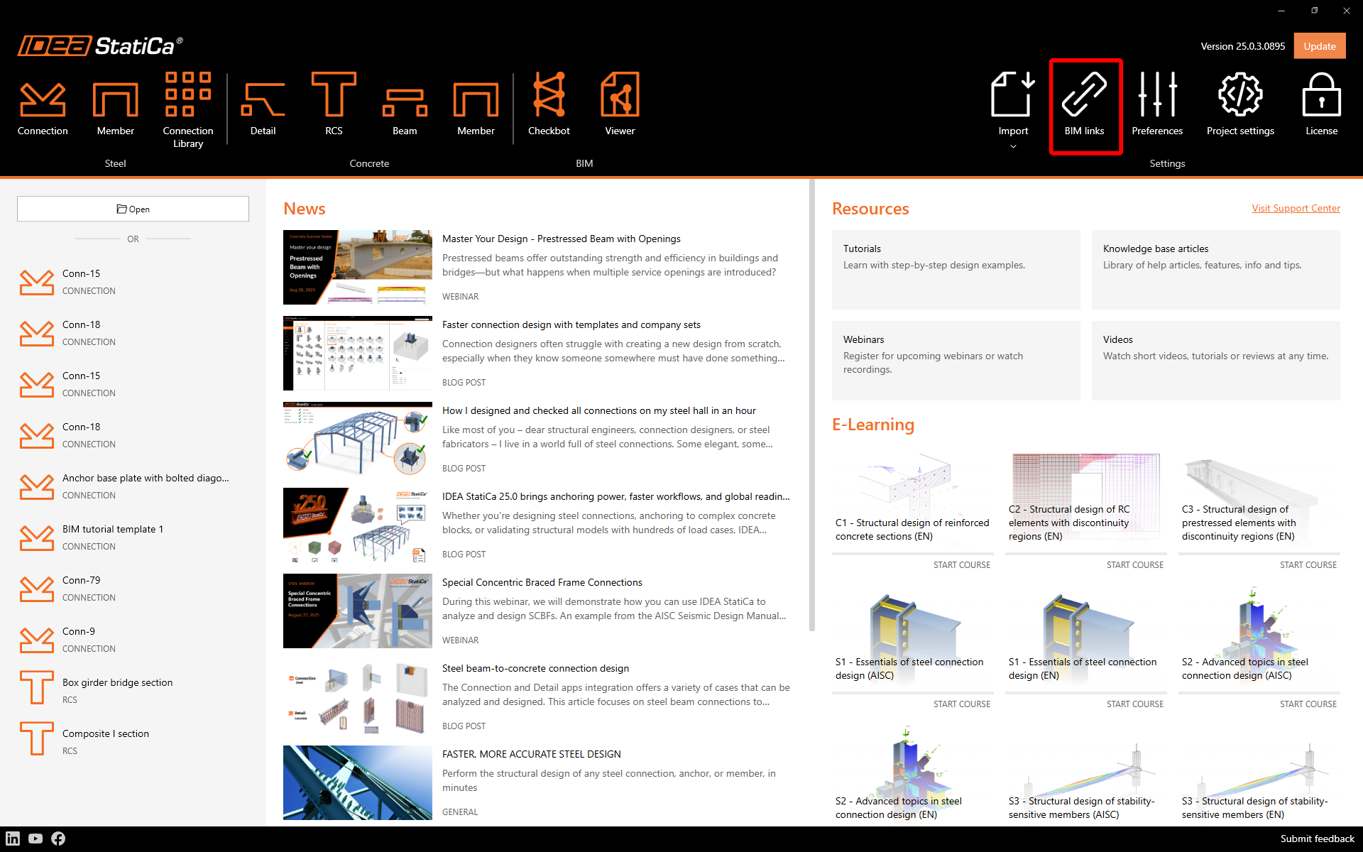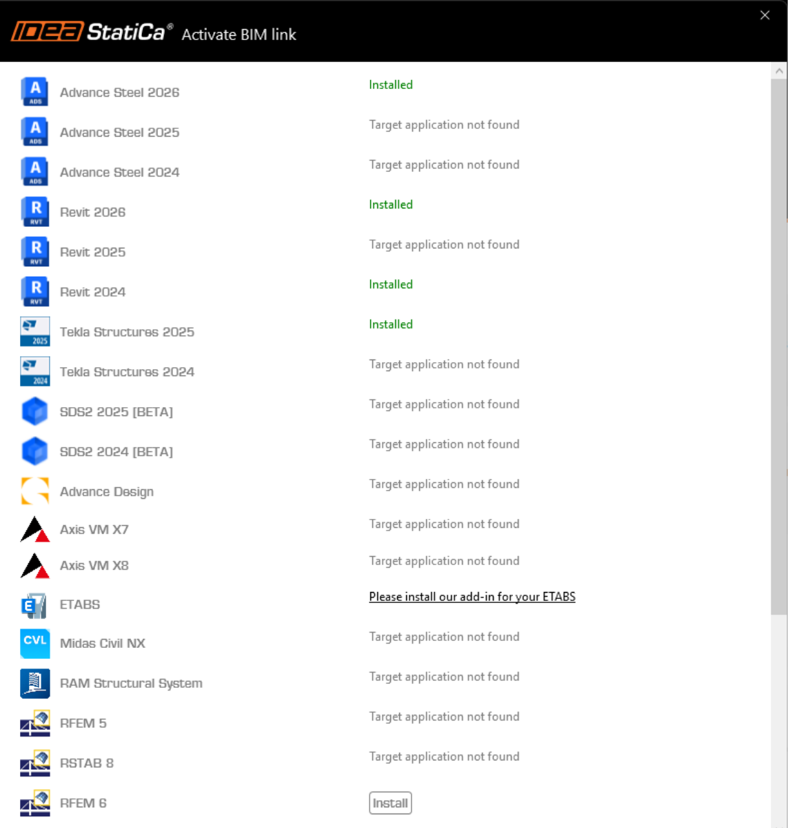 IDEA StatiCa integrates BIM links into your FEA solutions during its installation. You can check the status and activate more BIM links for software installed after in the BIM link installer.