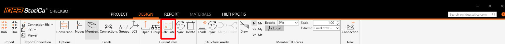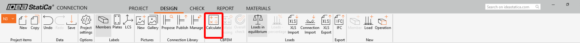Now run a code-check using the Calculate icon in the CBFEM panel from the top ribbon.