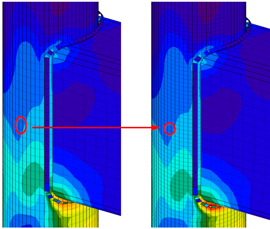 We have also programmed the newest mesh generation rules to ensure better distribution in all plates. Connections composed of splice and backing plates, intermediate stiffening members, or stiffening plates used as custom end plates are tuned for even higher precision of analysis and match better with other parts of the connection.