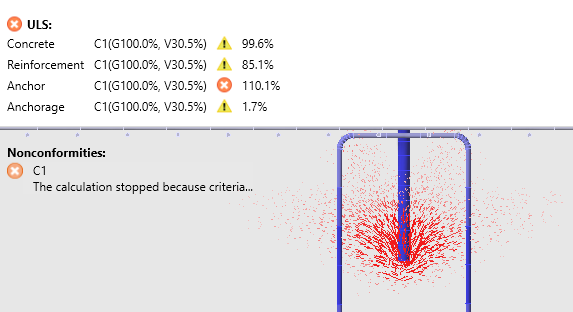 In the Connection app, anchor code checks are performed using analytical formulas. Some of these formulas have now been implemented in the Detail app, with the option to select the design standard used for code checking. Unlike Connection, anchorage in Detail is treated as a discontinuity region, where the reinforcement of the concrete block is considered using the advanced 3D CSFM method.