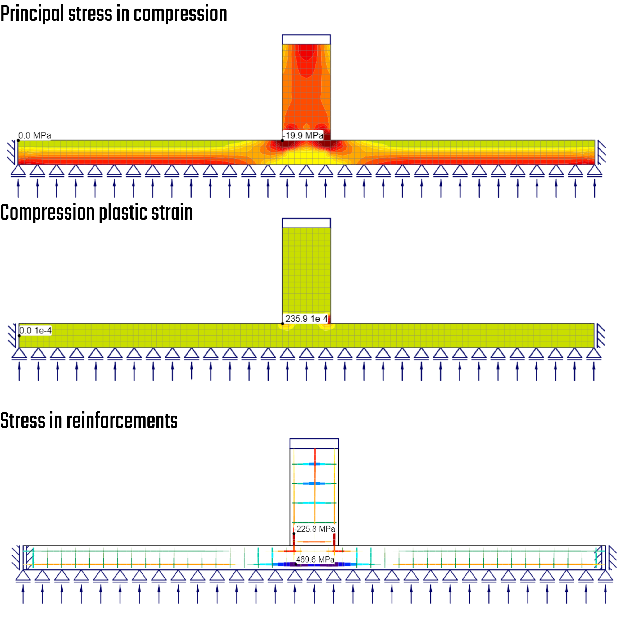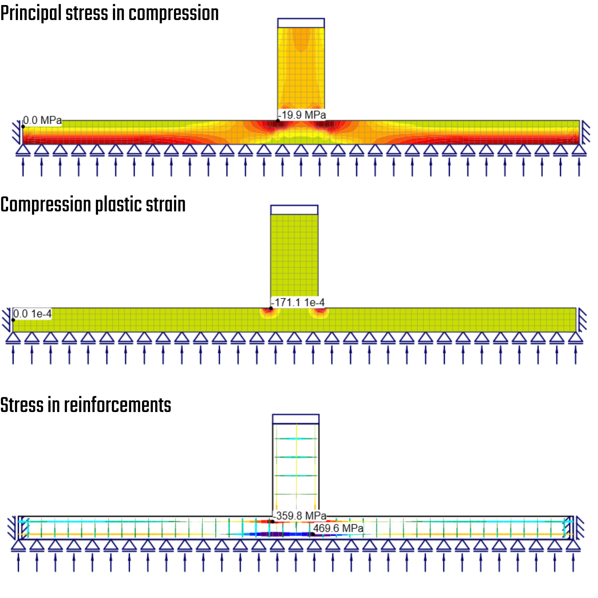 21) Principal stress in compression, compression plastic strain, stress in reinforcements