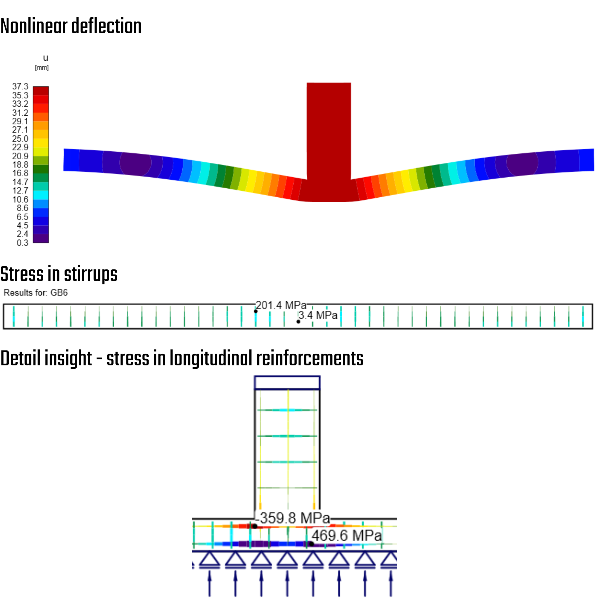 19) Nonlinear deflections, stress in stirrups, and detailed insight into the failure modes of longitudinal bars