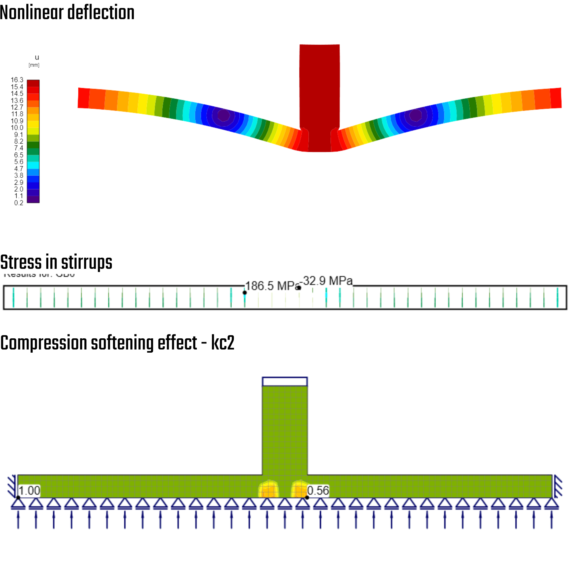 22) Nonlinear deflections, stress in stirrups, and localized compression softening