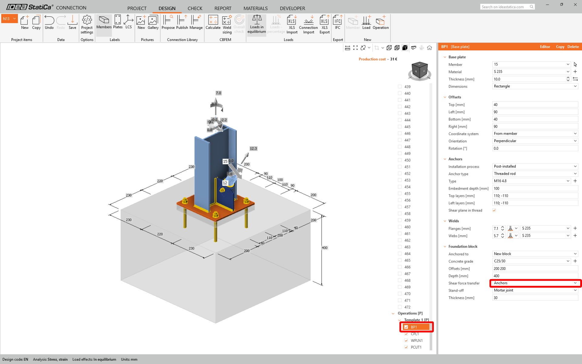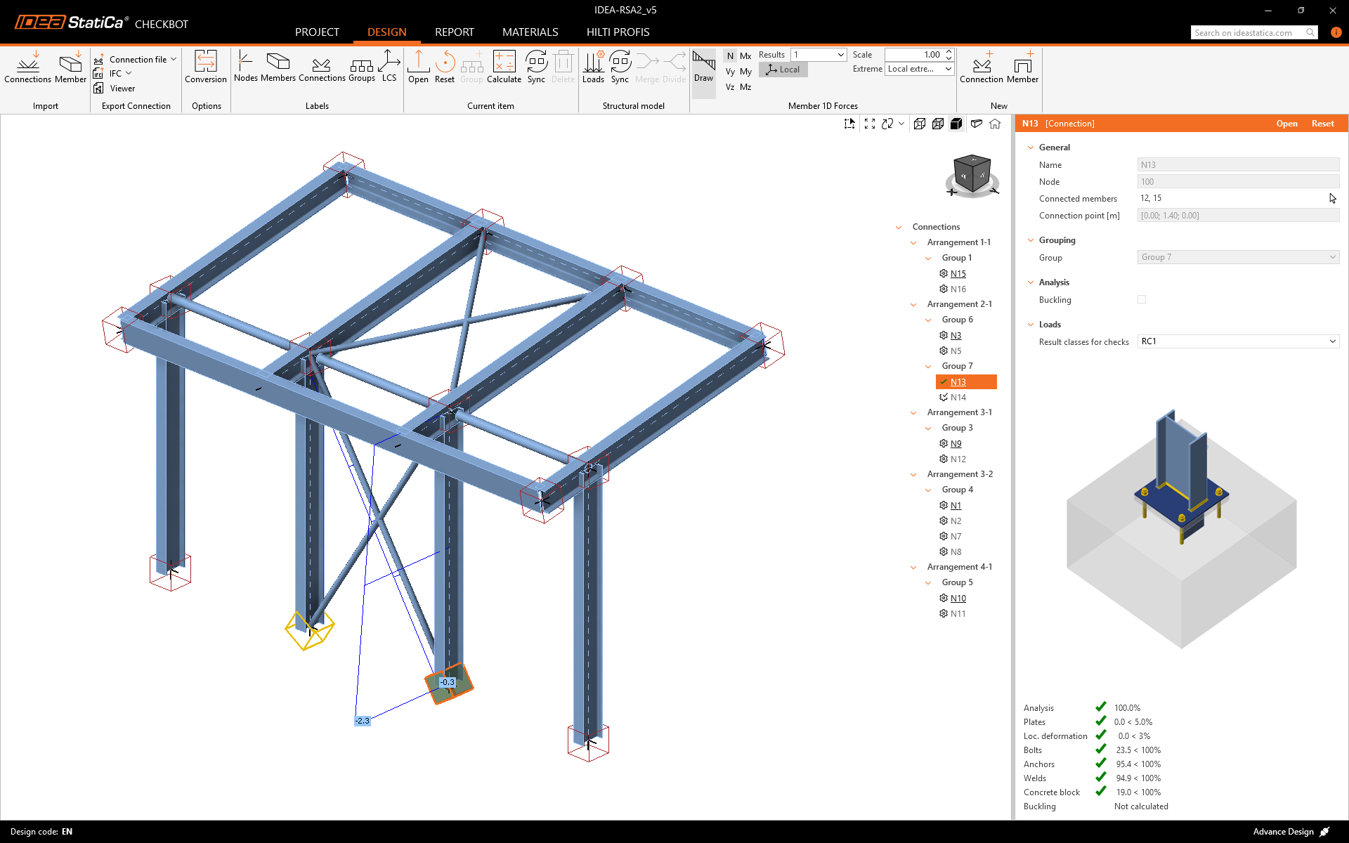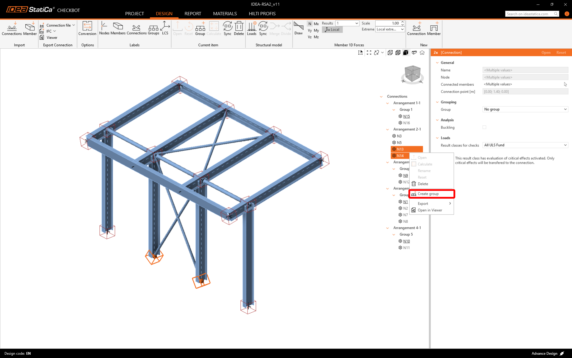 Now you can assign correct Result class to designed connection and activate Calculate load extremes for group. This allows you to design and check the connections only for Critical load effects.