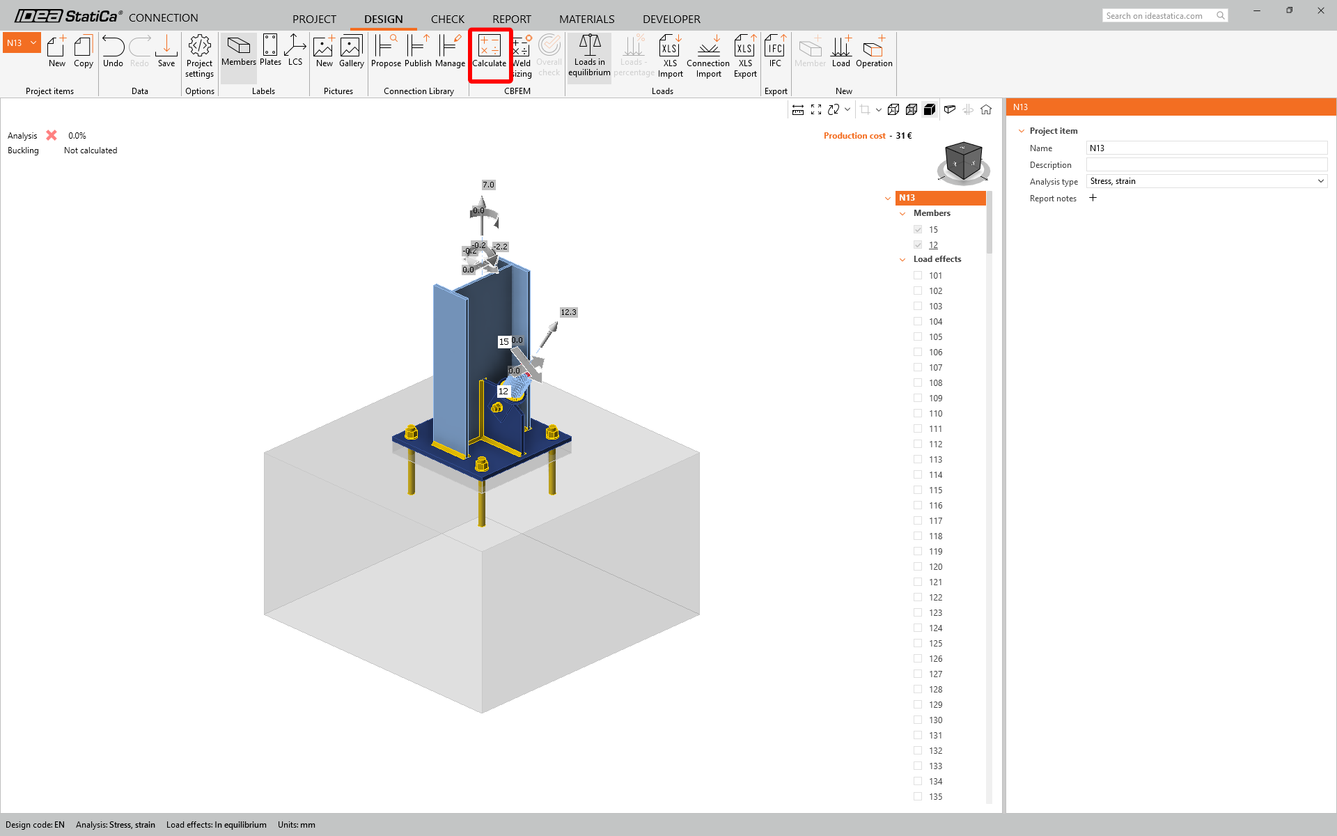 Now run a code-check using the Calculate icon in the CBFEM panel from the top ribbon.