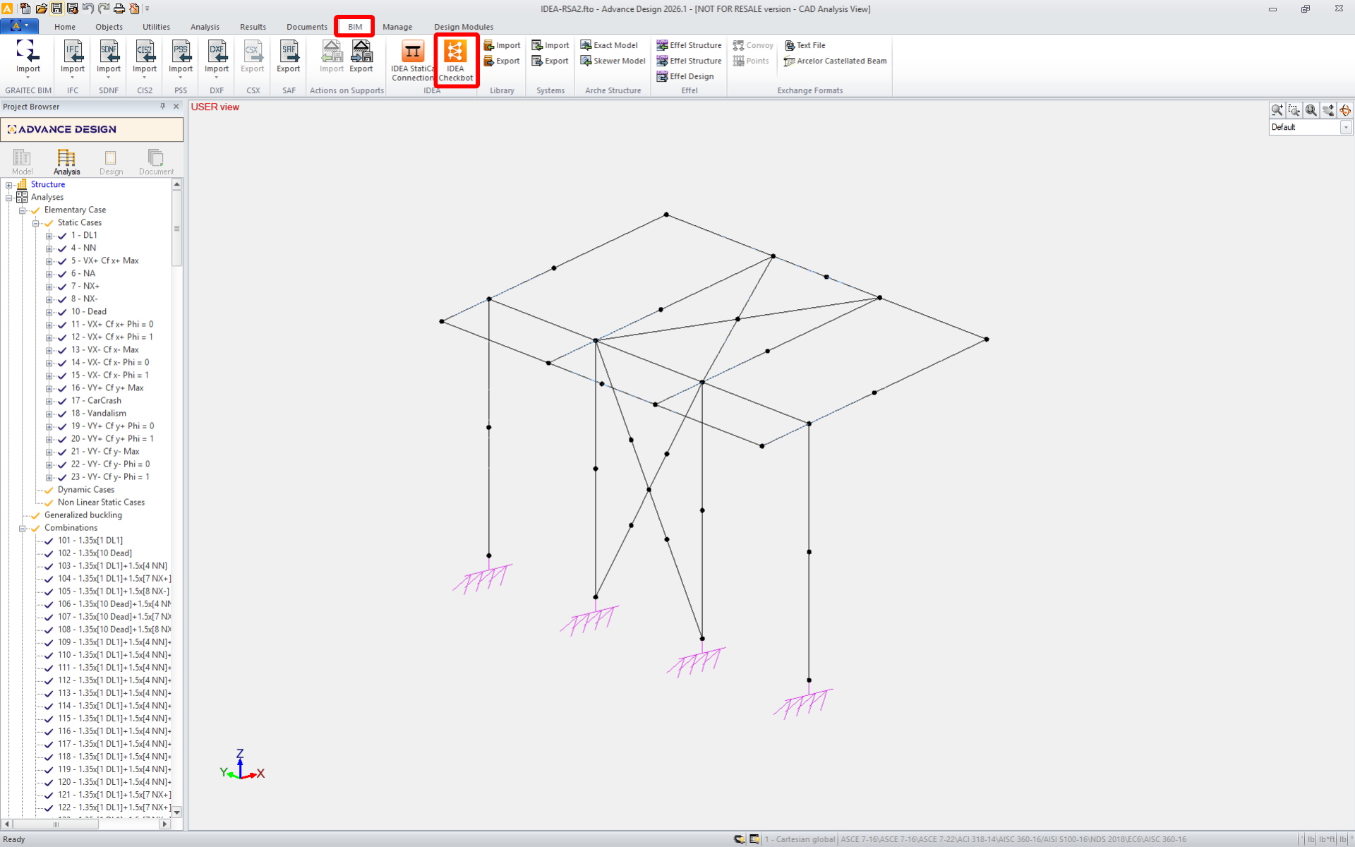 This will import the structure and its load effects into Checkbot - with the same coordinates, orientations, and section sizes as per the FEA model. Please note that your node and member numbering might be different.