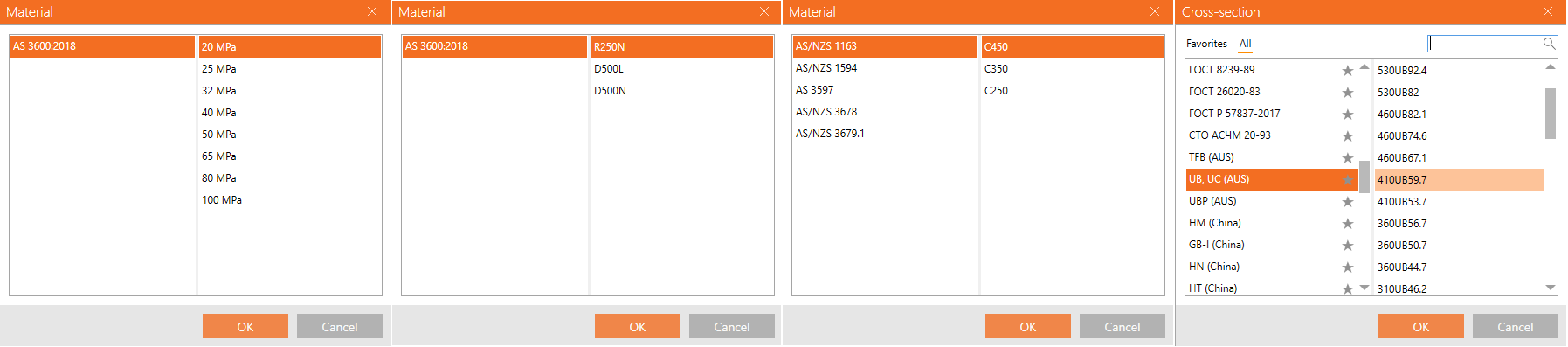 - Material Database – A built-in database includes concrete, reinforcement, and steel materials defined by AS 3600.