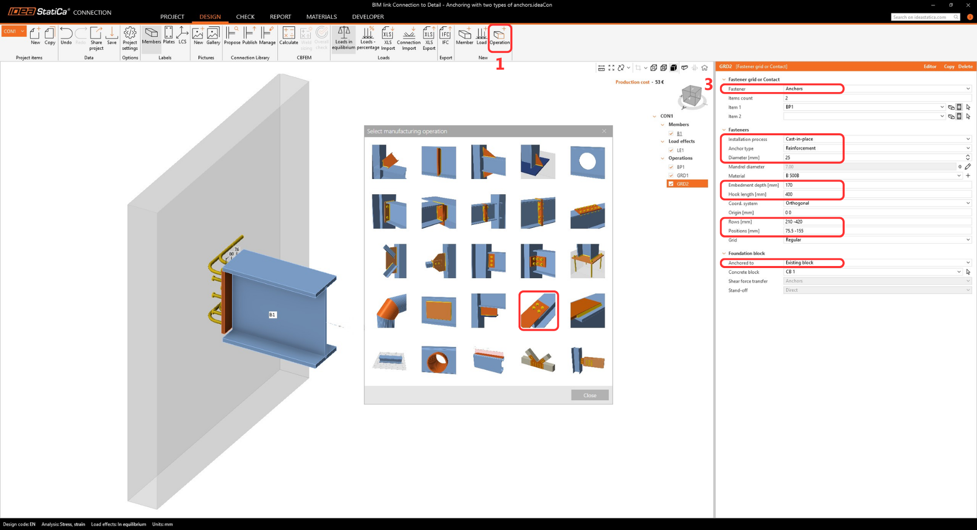BIM link Connection to Detail - Anchoring with two types of anchors (EN)