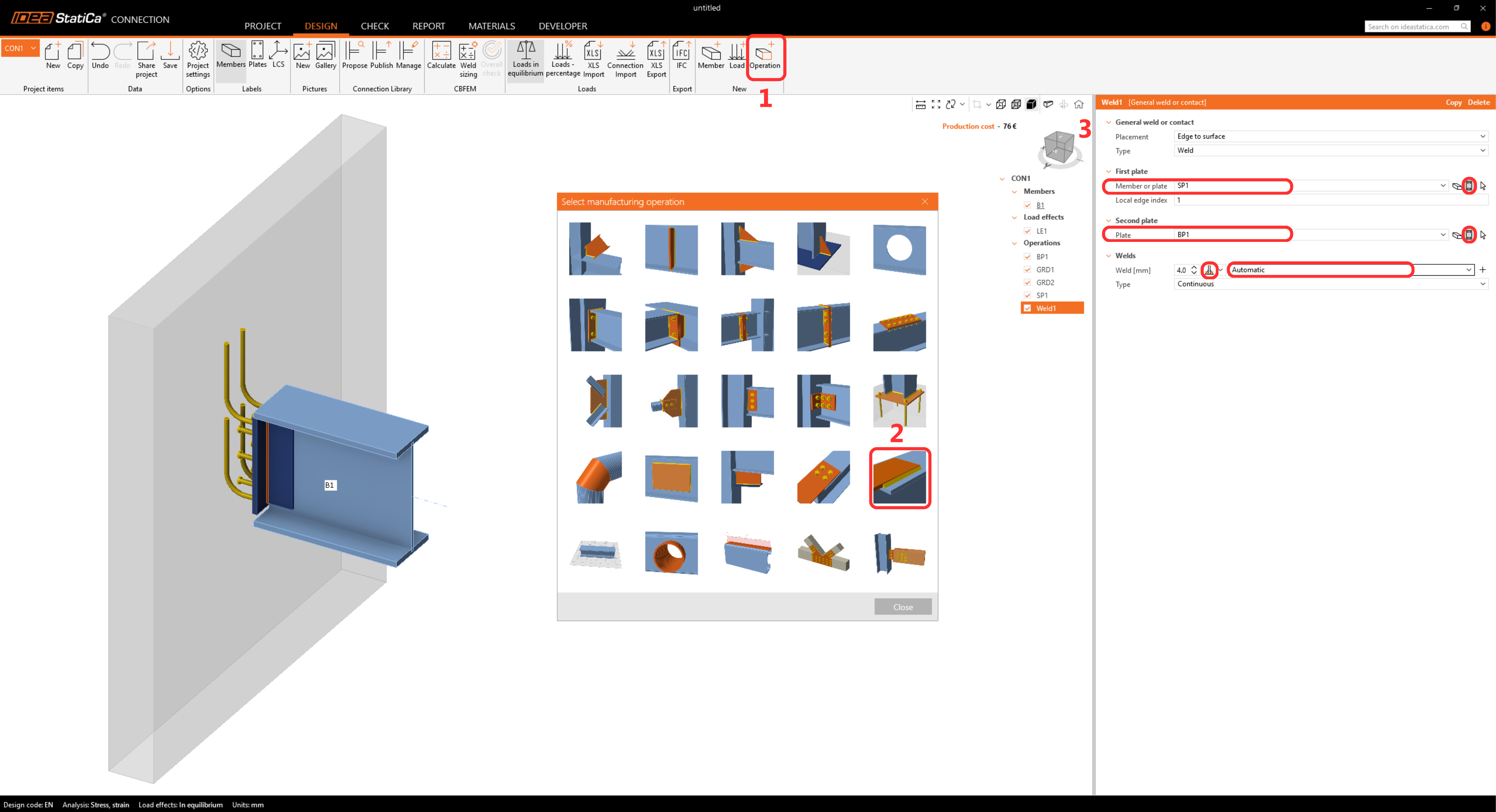 • This limitation can be easily resolved in Detail 3D, powered by the CSFM method, which replaces the simplified analytical assessment in Connection with a rigorous 3D stress-strain analysis.