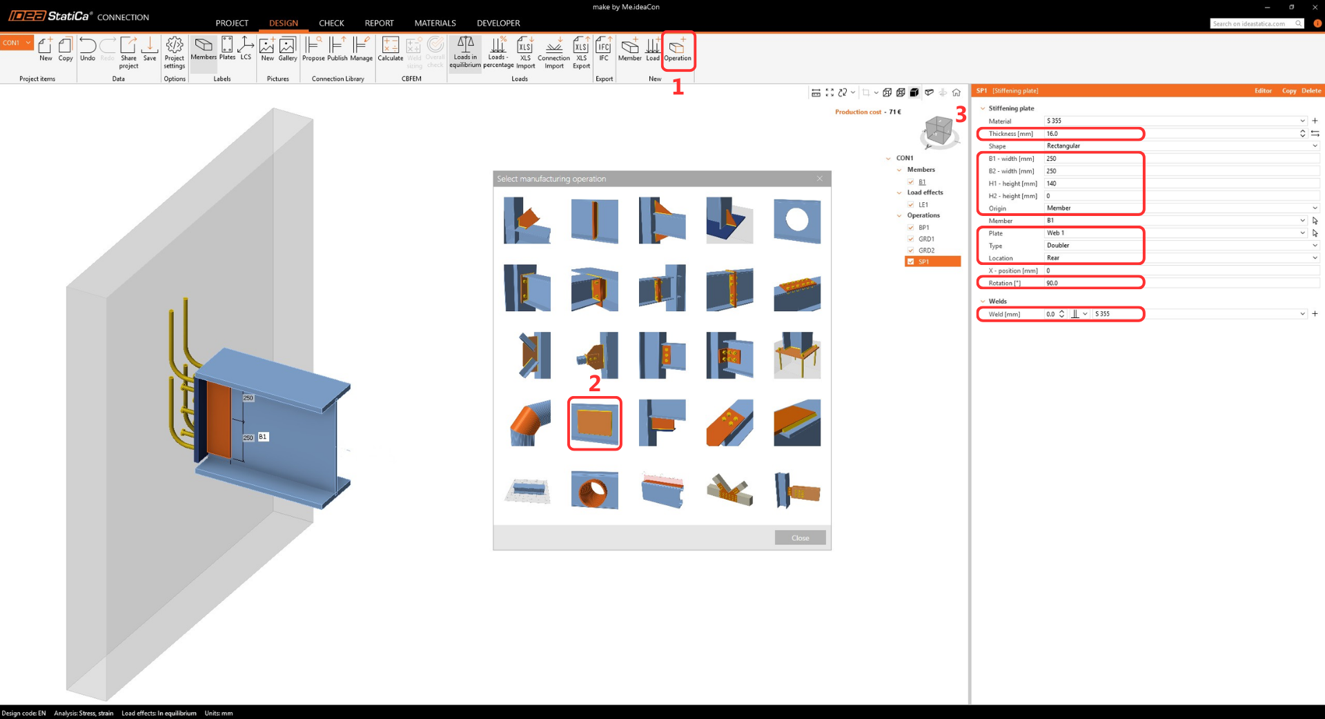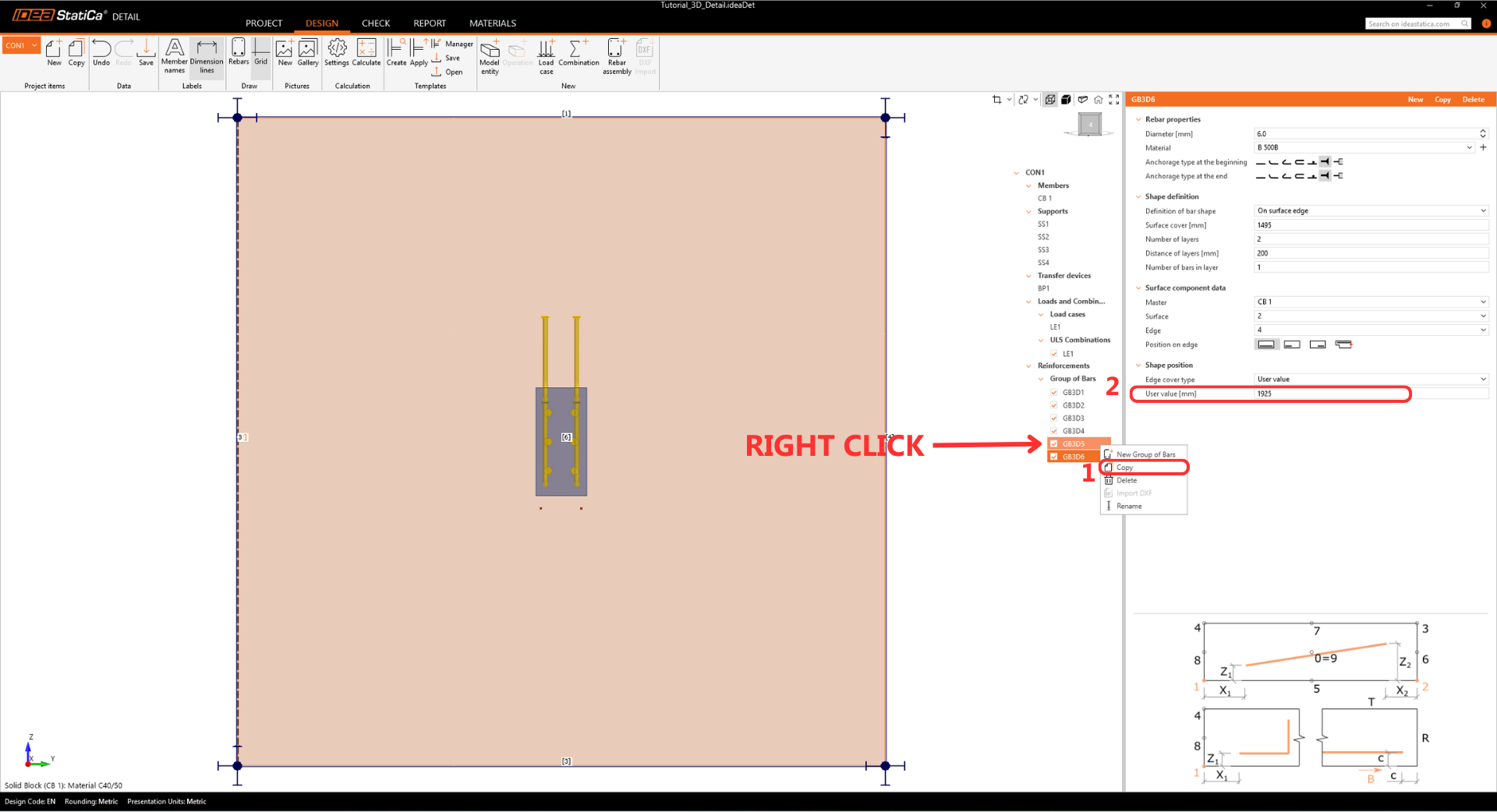 Finally, copy operation GB3D9 and update the final reinforcement options.