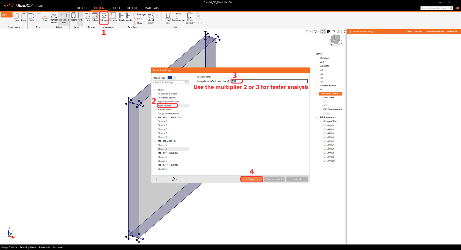 Before running the analysis, we highly recommend changing the Mesh multiplier to 2 or 3 to speed up the calculation. While this step is not mandatory, it significantly reduces computational time and helps detect potential divergence issues early. If the analysis runs smoothly, you can then revert the Mesh multiplier to 1 for the final results.