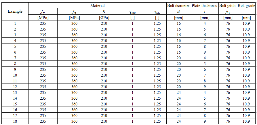 Table 5.6.1 Examples overview. Effect of bolt pitch