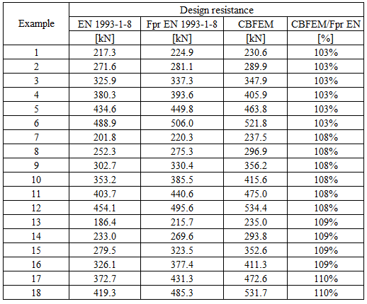 Table 5.6.4 Comparison of results of design resistances predicted by CBFEM, EN 1993-1-8 and Fpr EN 1993-1-8. Effect of plate thickness