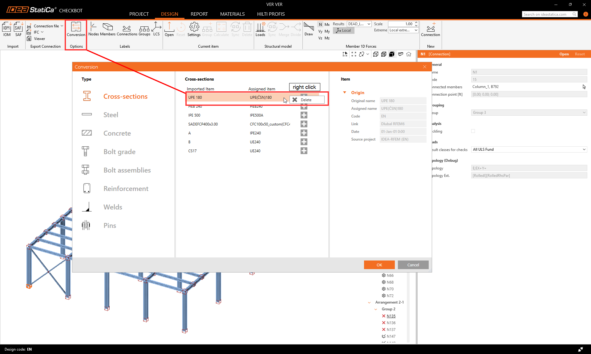 Checkbot also visualizes the internal forces of imported combinations. Right-click connections/members or choose all of them and select the load combinations and internal forces to be displayed.