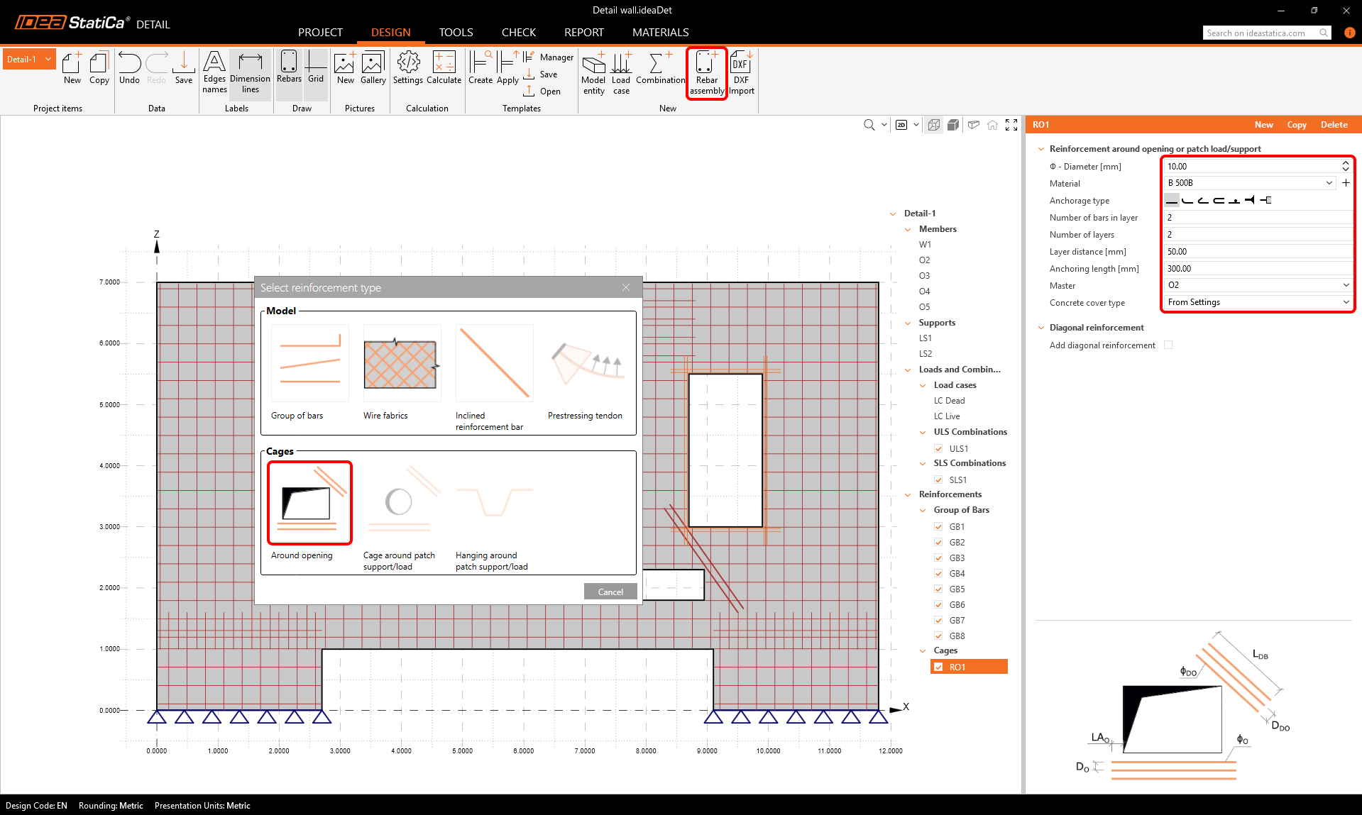 Around the openings, we should add reinforcement cages. Define the first set according to the picture.