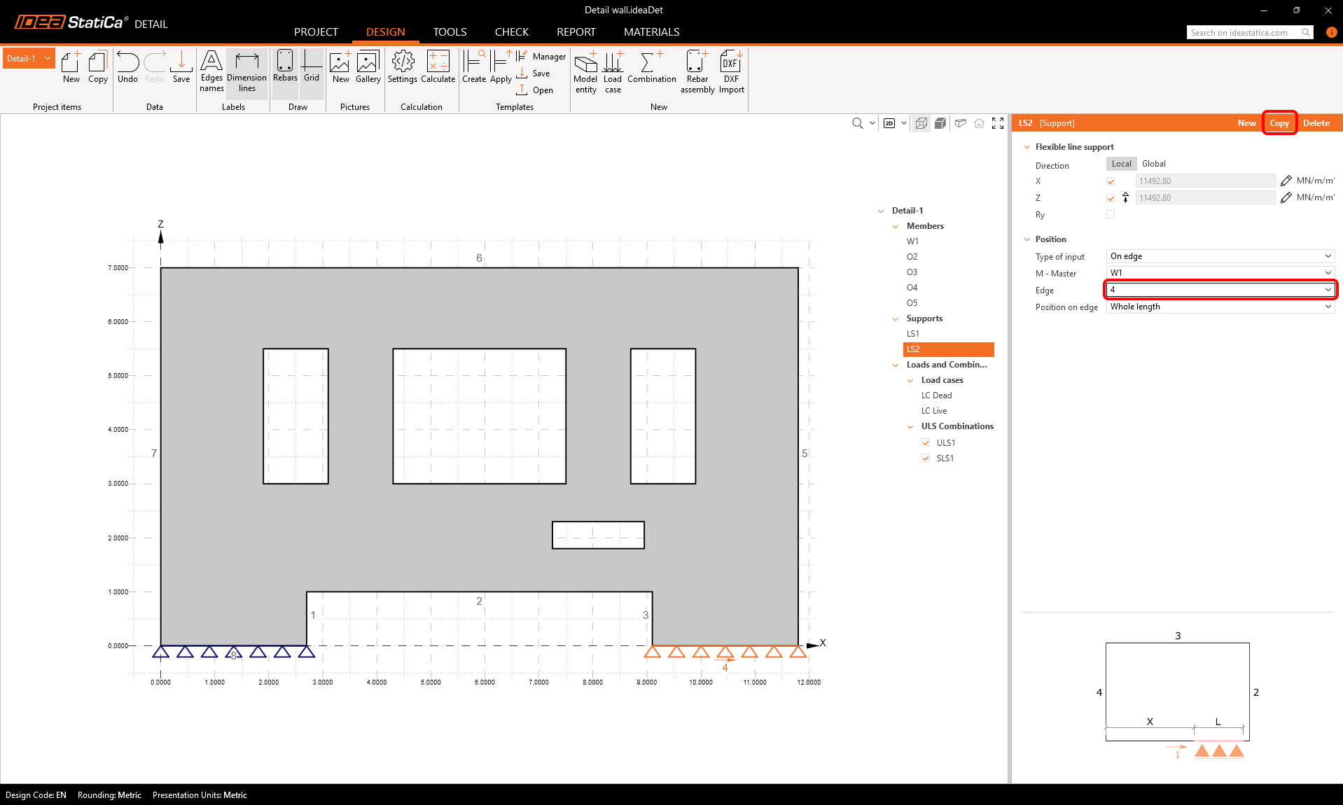 Let's copy again, and set the settings to create reinforcement into the lower left part of the wall.