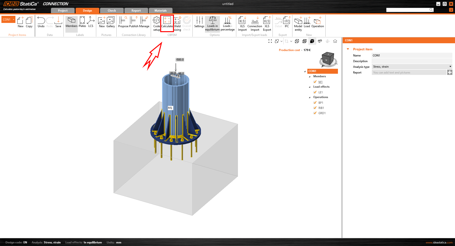First, create a model of anchoring in Connection according to Eurocode and click the Calculate button.
