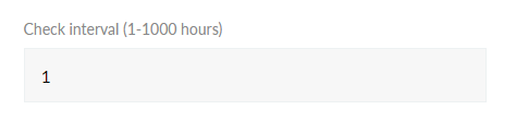 The check interval is set to one hour by default and can be edited by the license admin in the User Portal.