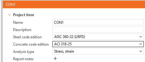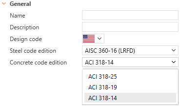 This flexibility allows users to combine different AISC and ACI versions in a single project according to specific design or contractual requirements.