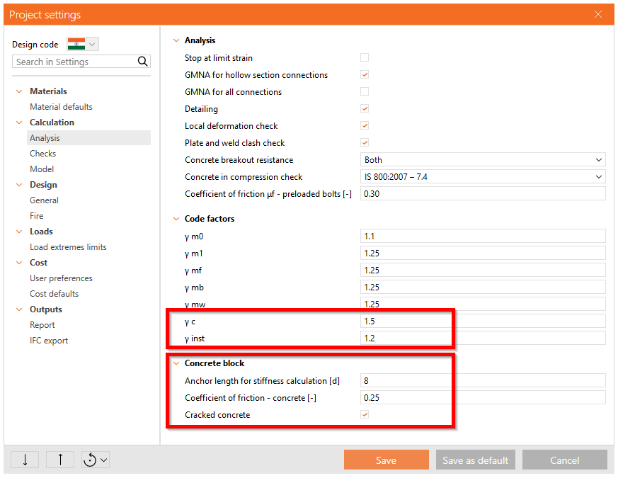 Supported anchor types include post-installed threaded rods and cast-in washer plate anchors, with relevant parameters integrated into the Project settings for consistent application across designs. This closes a long-standing gap where only steel checks were available under the Indian code, requiring users to depend on external tools.