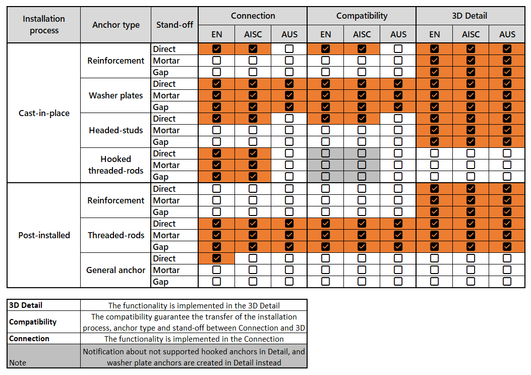 These options are also consistent with IDEA StatiCa Connection. How this is aligned to different standards can be seen in the following table.