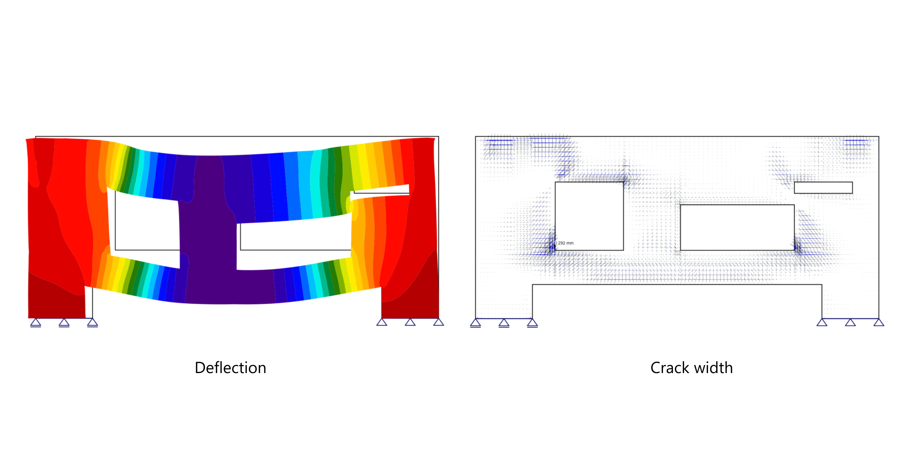 Once the analysis is complete, IDEA StatiCa Detail provides engineers with comprehensive results, including concrete and rebar stresses for ULS (Strength), as well as crack width and displacement checks for SLS (Serviceability). This increases design confidence and reduces the risk of, for example, cracking-related issues or excessive deflections.