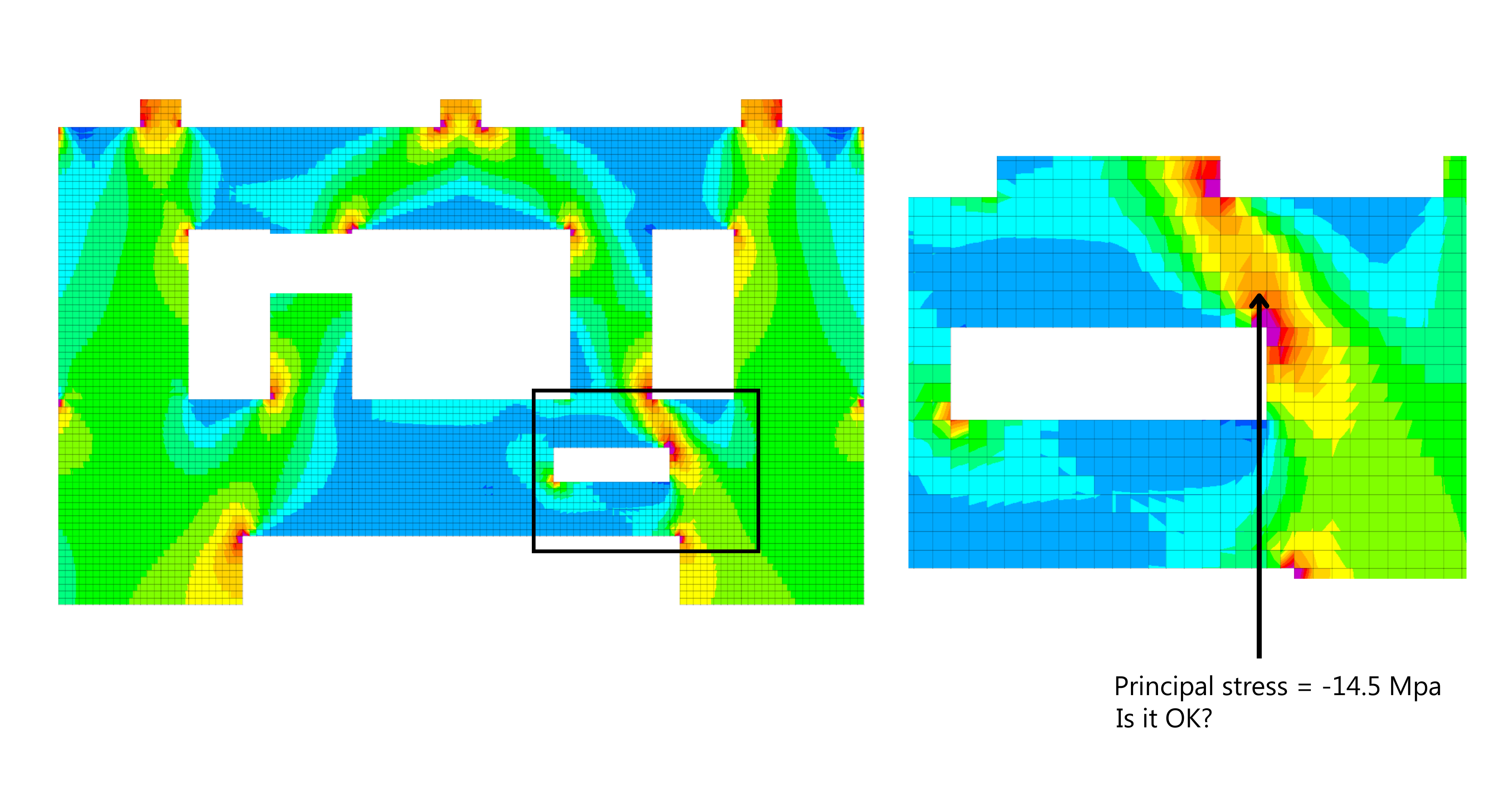 Designing transfer walls with openings presents unique challenges. Traditional hand calculations are often time-consuming and involve extensive trial and error. Alternatively, using principal stress outputs from global FEA software may lead to unsafe designs due to overlooked factors such as compression softening.